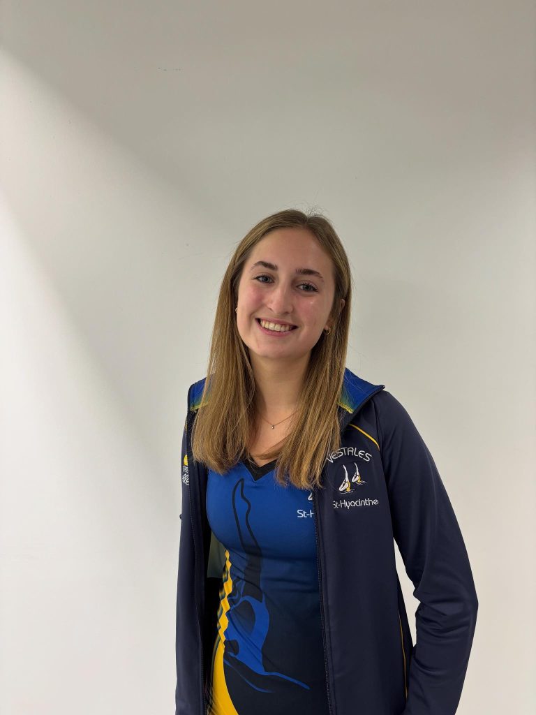 Emma entame sa troisième saison comme entraîneure aux Vestales. Son calme et son sourire font d’elle une entraîneure rassurante et appréciée de ses athlètes.